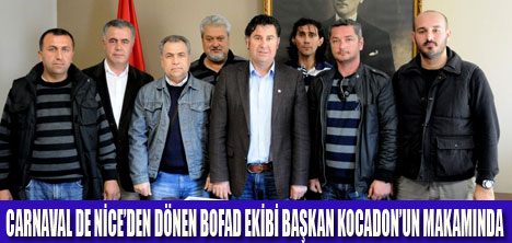 Geçtiğimiz günlerde Fransa'nın Nice şehrindeki “Carnaval De Nice 2011”e katılan ve büyük övgüler alan Bodrum Folklor Araştırma ve Turizm Derneği Kulübü üyeleri Bodrum Belediye Başkanı Mehmet Kocadon'u makamında ziyaret ederek folklora verdiği destekten dolayı teşekkür ettiler.