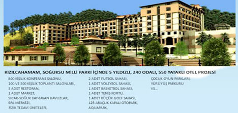 Kızılcahamam çok kısa bir zaman sonra büyük bir tesise daha kavuşacak. Yeni yatırım ile Kızılcahamam'daki turizm hareketliliği daha da artmış olacak. Projede ayrıca ; Yurtiçi ve yurtdışı kongre ve toplantı taleplerini karşılayacak 800 kişilik , 250 kişilik , 100 kişilik , 50 kişilik irili ufaklı salonlar olacak. Spor tesisleri ile bölgeyi doyuracak tesislere sahip olacak. 2 adt olimpic çim futbol sahası , 2 Adt Tenis kortu , 1 adt Voleybol Sahası , 1 adt Basketbol sahası , Mini Golf Sahası , 1 adt çocuk oyun parkı ve özellikle son yılların yükselen spor dallarından paint ball alanları mevcut olacak