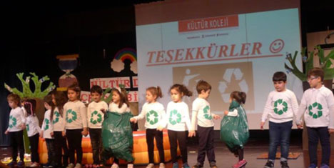 Şu an kullandığımız birçok kaynak ileride tükenecek. Açlık ve susuzluk ise insanları bekleyen en büyük tehlike... Verimli tarım topraklarının gittikçe azalmasına karşın bu dünya ileride daha fazla insanı nasıl doyuracak? Tatlı ve kaynak sularının hızla tüketilmesi ile yıllar sonra balığın tadının ne olduğunu bilebilecek miyiz? Eğitimin çocukluk yıllarından, anaokulundan başladığını bilmenin bilinci ile bu sene İstanbul Kültür Eğitim Kurumlarının ortak teması ÇEVRE.  Çocuklara doğal hayatı tanıtmak, çevre bilincini geliştirmek, doğa ile uyumlu bir yaşam tarzı benimsemelerini ve doğal olan her şeyi koruyarak doğaya zarar verici etkenlere karşı olmak bilincinin oluşumunu teşvik etmek amacıyla farklı projeler hazırlanıyor. Geçtiğimiz günlerde, Kültür Koleji anaokulu öğrencileri de hazırladıkları çevre projelerini sunma fırsatı buldular. Su, hava ve çevre kirliği – toprak ve geri dönüşüm konu başlıklarında geliştirdikleri projelerle bu alanda farkındalık kazanıp, sahip olunan kaynakları nasıl kullanabileceklerini, kendi hak ve özgürlüklerine sahip çıkmanın önemi kadar doğayı oluşturan tüm unsurlara da sahip çıkmanın önemini ve bilincini kazandılar. Sağlıklı bir yaşam temiz bir doğal çevrede olur mottosuyla hareket eden minikler doğayı korumak, yaşadığımız çevredeki ortak kullanım alanlarını paylaşmanın önemine değindiler. 7 milyar kişinin hayalini 1 gezegende gerçekleştirebilmek adına önlemlerin alınması gerektiğini büyüklerine anlatmaya çalıştılar.