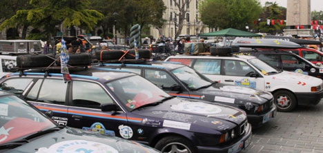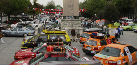 HABER MERKEZİ-Türkiye'nin de aralarında bulunduğu 20 ülkeden 355 klasik araç Sultanahmet'te bir araya geldi. 2006 yılından beri her yıl düzenlenen rallinin Türkiye etabına A.B. Bakanı Egemen Bağış tarafından start verildi. Fatih Belediyesi ve Allgau Orient Rallye işbirliğiyle düzenlenen etkinliğe 20 ülkeden toplam 355 klasik otomobil katıldı. 4 Mayıs günü saat 15.00'de mehter takımı ve klasik otomobil şoförlerinden oluşan müzisyenler, Sultanahmet Meydanı'na kurulan sahnede gösterilerini yaptıktan sonra enstrümanlarını Fatih Belediyesi Müzik Okulu'na bağışladılar. Sultanahmet'te Türk işçilerinin Almanya'da çalışmaya başlamasının 50. Yılı dolayısıyla yapılan sembolik anıta gurbetçi işçilerimiz tarafından üretilen çeşitli materyaller çakıldı.