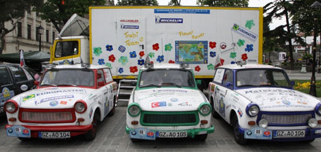 Sağ olsunlar geçen yıl aynı ekip Avrupalıların ambargo uygulamaya çalıştığı KKTC'ye gitmişti, bu yıl da Bakü'ye gidiyorlar. Bu konvoy Almanya'dan başladı ve Avrupa'nın farklı ülkelerinden katılan her bir aracın üzerinde bayrağımız var. Aylardır Türk bayrağı ile kendi ülkelerinde kendi şehirlerinde bizim reklamımızı tanıtımımızı yaptılar. Şimdi Türkiye'de farklı illerimize gidecekler dedi. Türk işçilerinin Avrupa'ya gidişinin 50. Yılı dolayısıyla oluşturulan sembolik anıtın da açılışını yapan Bakan Egemen Bağış Avrupa'ya giden işçilerimiz bugün Almanya'nın dünyanın en güçlü ekonomilerinden biri olmasını sağladı.