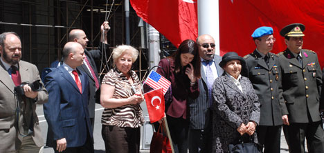 Bayraklar göndere çekilirken önce Amerikan sonra Türk Milli marşları çalındı.Katılımcılar saygılı bir şekilde olayı izlediler.Türklüğün sesi bir kez daha Amerikan semalarında çınladı...