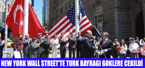 New York Borsasini sembolize eden boga heykeli onünde, once Amerikan Milli Marsi eşliginde Amerikan bayragi, ardindan da Istiklal Marşı eşliginde Türk bayrağı göklere cekildi. Tum Amerikada yaşayan Türk vatandaslarımızın çağrılı olduğu törene katılım çoktu.New York da Türkiye yi temsil eden protokol tam kadro hazırdı.Turizmin Seher ablası "Seher Aybek" Türk haftası kutlamalarında vatandaşlarımızı yanlız bırakmayarak İstanbul'dan Newyork'a gitti...