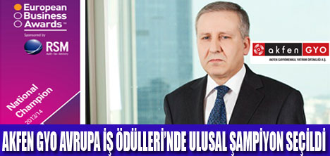 Akfen GYO, ‘Ulusal Şampiyon’ olarak Avrupa İş Ödülleri’nin bir üst elemesine katılacak. Türkiye’de hızla büyüyen şehir otelciliği konseptine odaklı ilk ve tek gayrimenkul yatırım ortaklığı olan Akfen GYO, 2013-2014 yılı Avrupa İş Ödülleri’nin ilk aşamasında ‘Ulusal Şampiyon’ seçildi. Akfen GYO yarışmanın ikinci aşaması olan Ruban d’Honneur (Onur Kurdelası) için yarışacak.