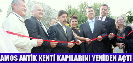 Amos Antik Kentinin açılış kurdelesi Vali Fatih Şahin tarafından antik kentin girişinde kesildi. Kurdele kesiminden sonra açılış ile ilgili konuşmaların ve plaket töreninin yapıldığı antik tiyatro alanına yüründü.Törende ilk konuşmayı Marmaris Müze Müdürü; Esengül Yıldız Öztekin yaptı. Amos Antik Kenti'nin tarihi dokusunun zaman içinde doğanın ve kaçakçıların tahribatıyla baş başa kaldığını belirterek şunları söyledi: ''Tepede yer alan bu tarihi yerin geçenlerin dikkatini dahi çekmediğini fark ettik. Kenti bilen ziyaretçiler ise en yüksek noktada yer alan tiyatroya ulaşabilmek için açtıkları yollarla tarihi dokuya zarar vermişler. Rodos karşı yakasının önemli kentlerinden biri olan Amos'ta gezi güzergâhının belli olmaması ve bilgilendirme levhalarının yer almaması ziyaretçilerde olumsuz etki bırakıyordu.''