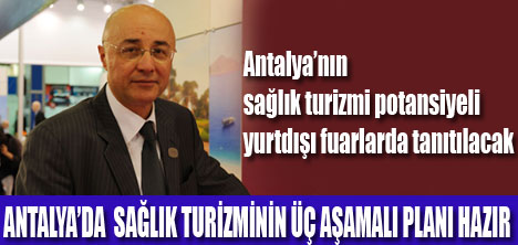 HABER MERKEZİ-Çalışmaları yürütmek için oluşturulan Antalya Sağlık Turizm Platformu, fuarlara katılım, broşür hazırlama ve uluslararası bir çalıştay düzenlemeyi içeren üç aşamalı bir plan hazırladı. Türkiye'nin 'turizm başkenti' Antalya sağlık turizminde de öne çıkıyor. Son zamanlarda gerçekleştirilen yüz nakli ameliyatları Antalya'nın sağlık turizmi potansiyelini gösteren birkaç örnekten sadece biri. Bölgenin sahip olduğu zengin potansiyelin doğru değerlendirilmesi amacıyla Antalya Ticaret ve Sanayi Odası (ATSO) tarafından Antalya Tanıtım AŞ organizasyonu ile Antalya Sağlık Turizmi Platformu oluşturuldu.
