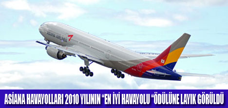 18 milyon yolcunun oyları ile 200 havayolu arasında 2010 yılının En İyi Havayolu ödülünü alan Asiana Havayolları aynı zamanda 2010 yılının En İyi Asya Bölgesi Havayolu da seçildi. Bu ödül ile Asiana Havayolları 4. kez beş yıldızlı havayolu ünvanını almış oldu.