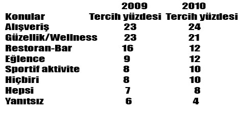 Eurobarometer, Avrupalılar'ın Turizme Dönük Yaklaşımları Araştırması sonuçlarını açıkladı. Genel Girişimcilik ve Endüstri Müdürlüğü'nün talebi üzerine 27 AB üyesi ülkenin yanı sıra, Hırvatistan, Türkiye, Makedonya, Norveç ve İzlanda'yı da kapsayan araştırmaya göre, dünyayı etkileyen ekonomik krizden dolayı Avrupalı turistler tatildeyden ağırlıklı olarak Wellnes ve alışverişten tasarruf etmekten yana. Araştırmanın yapıldığı ülkelerde Tatilde olsaydınız hangi boş zaman aktivitesinden tasarruf etmeyi tercih ederdiniz? sorusuna, yüzde 24 ile güzellik-wellnessten ilk, yüzde 21 ile de alışverişten tercihi ikinci sırada çıktı.