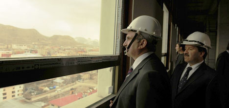 HABER MERKEZİ-Vali Münir Karaloğlu, Kazım Karabekir Caddesi üzerinde inşaatı devam eden Elit World Oteli'ne gidişinde işletmeci Coşkun Elik tarafından karşılandı. Görevlilerin verdiği bareti kafasına takan Karaloğlu, yetkililerle birlikte otelin lobisinden başlayarak Zemin, 1, 2, 7 ve 8'nci katları dolaştı. 230 odalı otelde 120 metre karelik kral dairesi, süit ve diğer odalar yer alıyor. Otelin 7'nci katında aynı anda 1.200 kişinin toplantı yapacağı ayrı ayrı salonlar mevcut. Son teknoloji kullanılarak iç dizaynı yapılan otelde yüzme havuzu, kar odası, fitness center, sauna, buhar banyosu, Türk hamamı ve güzellik salonları yer alıyor. Vali Karaloğlu, Van Kalesi ve göl manzaralı 500 metre karelik balo salonunda gazetecilere açıklamalarda bulundu.