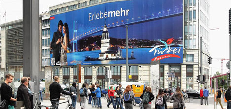 T.C. Kültür ve Turizm Bakanlığı'nın 2012 yılı reklam ve tanıtım kampanyaları kapsamında Berlin'de günde on binlerce insanın geçtiği ünlü Potsdamer Platz Sony Center'a yerleştirilen Boğaz Köprüsü ve Kız Kulesi görseli hem dev boyutu hem de görsel estetiği ile büyük beğeni topluyor. Bakanlığın resmi reklam ajansı dDf International tarafından yüksek gelirli turist profili hedeflenerek hazırlanan poster, Erlebemehr Daha Fazlasını Yaşayın sloganıyla İstanbul'un büyüleyici güzelliğini yansıtıyor.