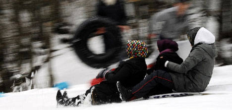 Tatil için Bolu'nun doğal güzellikleriyle ünlü Abant Tabiat Parkı'na gelen tatilciler, köylüler tarafından yarım saatliği 10 TL'ye kiralanan ve şambriyel adı verilen lastiklerle gün boyunca göl çevresindeki ormanlık alanda kayak yapıyorlar.