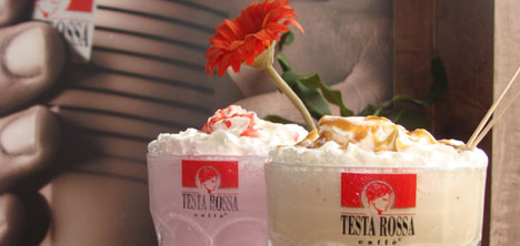 Testa Rossa Caffe, kahve çekirdeklerini, dünyadaki beş en iyi kalitedeki Arabica çekirdeğinin karışımından elde ediyor. Bu sayede kahvelerinin lezzetine lezzet katıyor. Sıcak kahvelerinde ki başarısını, soğuk kahvelerinde de gösteren Testa Rossa Caffe, zengin soğuk kahve mönüsünü dondurmalı tatlarla da birleştirerek renklendirdi. Soğuk kahveler, frappucinolar, dondurmalı karışımlar, taze meyve özleri ile hazırlanan fruttolar buz parçacıklarıyla birleşince leziz bir şölene dönüşüyor.Ayrıca yaz için hazırlanan özel mönüsünde hafif İtalyan lezzetleriyle nefis bir yemek yiyebilirsiniz. Soslarla hazırlanmış salatalar, özel ekmekler ile sunulan sandviçler, İtalya denilince akla gelen enfes makarnalar mönüden önerilenlerden sadece bir kaçı. Evinizin rahatlığını bulabileceğiniz ve müdavimi olacağınız Testa Rossa Caffeler, Levent, Gümüşsuyu, Avcılar ve Ankara 7. Cadde'de sizi küçük bir molaya davet ediyor