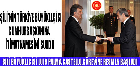 Şili'nin Türkiye Büyükelçisi Luis Palma Castello, 15 Kasım'da Cumhurbaşkanı Abdullah Gül'e itimatnamesini sunarak yeni görevini resmileştirdi