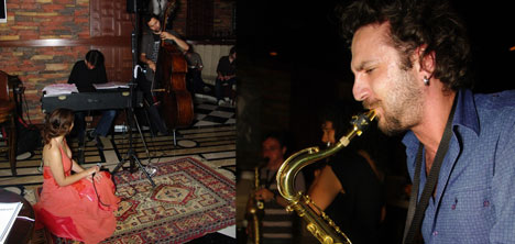 Genç bascılarımızdan Ozan Musluoğlu'nun gece boyunca sahnede olduğu jam session, saksafonda Meriç Demirkol, trombon'da Emre Kayhan, piyanoda Kürşat Deniz ve vokalde Feyza Eren'le devam etti. Caz dinleyicisinin pek de alışık olmadığı sahnelerin yaşandığı gecede, Feyza Eren'den mikrofonu devralan Dolunay Obruk caz standartlarını pistte serili olan halının üzerine oturarak seslendirdi