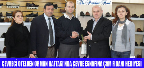 BW The President Hotel, çevre duyarlılığının artırılması amacıyla; 21 ile 26 Mart tarihleri arasındaki Orman Haftası nedeniyle, çevre esnafına 'çam fidanı' hediye etti