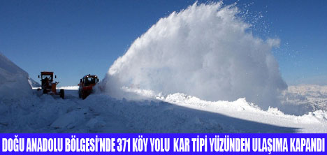 Bölgede aralıklarla etkili olan kar yağışı ve tipi, yüksek kesimlerde bulunan köylere ulaşımı olumsuz etkiliyor. Tunceli'de 148, Erzurum'da 111, Bingöl'de 95, Muş'ta 9 ve Ardahan'da 8 olmak üzere 371 köy yolu, kar ve tipi yüzünden ulaşıma kapalı bulunuyor. İl Özel İdare müdürlüklerinin karla mücadele ekipleri, zaman zamana etkisini artıran tipiye rağmen kapalı köy yollarının ulaşıma açılması için çalışmalarını aralıksız sürdürüyor.