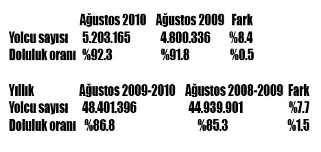 Ağustos 2010'da önceki yıl aynı döneme göre %8.4 artışla 5 milyondan fazla yolcu taşıyan easyJet'in doluluk oranı da %92.3 düzeyinde gerçekleşti. easyJet'in yıllık yolcu sayısı da %7.7 artarak yaklaşık 48.4 milyon oldu.