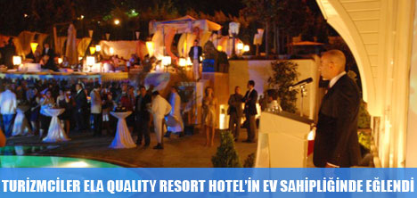 Gecenin ev sahibi Ela Quality Resort Hotel Genel Koordinatörü Vadi Karatopraklı yaptığı konuşmada, 2007 yılında açılan Ela Quality Resort Hotel'i destekleyen tüm acentelere, turizm şirketlerine teşekkür ederiz.
