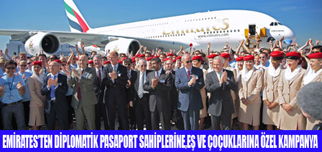 Fırst ve Busıness sınıfı uçuşlarda % 20 indirim ekonomi sınıfı uçuşlarda % 15 indirim uygulanacakKampanyadan diplomatik pasaport sahibi olan herkes yararlanabilecek. Diplomatik pasaport kopyasının Emirates ofisine gönderilmesi gerekmektedir.