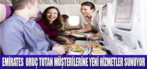 Buna ek olarak, Emirates'in uçuş sırasında yiyecek-içecek servisi ekibi de Ramazan'da oruç tutan yolcular için geleneklere uygun özel bir menü hazırladı. Emirates, iftar saatine yakın bir zamanda kalkan seferlerde yolcularına Emirates Terminal 3 çıkış kapılarında küçük iftar paketi servisi yapacak; uçuş sırasında ise oruçlu yolculara daha büyük iftar paketleri sunulacak. Emirates'in şefleri tarafından tasarlanan iftar paketleri Economy class yolcularına sunulurken benzer bir iftar paketi de hem Business Class hem de First Class'taki oruçlu yolculara ikram edilecek. Emirates Başkan Yardımcısı Robin Padgett, Müşterilerimizin kültürel çeşitliliğine büyük saygımız var; oruç tutmayan yolcularımız da Emirates'in dünyaca bilinen birinci sınıf yemeklerinin tadını çıkarmaya devam edecek. diyor.