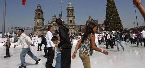 Başkent Meksiko'daki Zocalo meydanı, geçen yıldan sonra bu yıl da buz pistine dönüştürüldü.