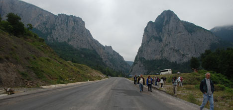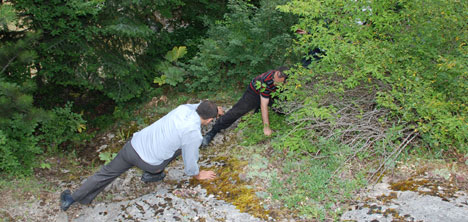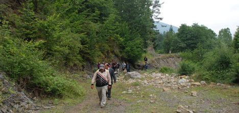Kaygan ve su birikintileri arasında kanyona paralel yollarda gazeteciler inişli çıkışlı yol üzerinde kanyon başlangıcı olan göletlere kadar yürüdü .Gidiş bir o kadar heyecanlı olurken dönüş nasıl olacak diye de düşünmeden edemedik.