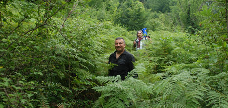 Eğrelti otları boyumuza kadar gelmiş arada birbirimiz seslenerek kaybetmiyorduk. Arada baktığımızda gruptan kimler kopmuş diye tabi sayı düşmüş yarısı geriye dönmüş yol üstünde kuş kirazı ve elma yiyorlardı.ilk bakışta Jumbo Tanju'yu aradı gözlerimiz.Oda otobüse dönmüş Başaran tur'un kaptanı Ortaköylü Metin'in demli çayını içiyordu. Elinde cay bize gülüyordu çünkü o kanyon yürüyüşünde belimize kadar çamur içindeydik