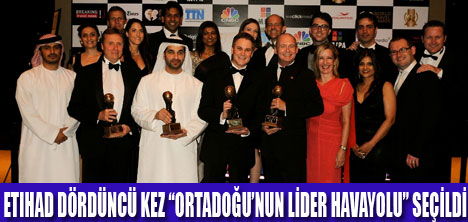 Birleşik Arap Emirlikleri'nin (BAE) ulusal havayolu şirketi Etihad, Dubai'de gerçekleştirilen Dünya Seyahat Ödülleri'nin Ortadoğu töreninde dördüncü yıl üst üste “Lider Havayolu” ödülünü alarak toplam dört dalda ödüle layık görüldü