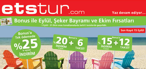 Etstur Yurtiçi Turlar Müdürü Suat Özbek indirimli dönemi şöyle değerlendiriyor: Bu yaz boyunca çeşitli ekonomik etkenlerden dolayı seyahate çıkamayan misafirlerimiz olduğunu düşünüyoruz. Bu misafirlerimize Eylül-Ekim aylarında ve beraberinde dokuz günlük bir tatili içeren Şeker Bayramı'nda (27 Eylül-05 Ekim) makul fiyatlarla ve uygun ödeme koşullarıyla tatillerini planlama imkânı sunmak istiyoruz.