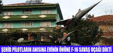 Galvanizli sacdan yaptığı uçağın 300 kilogram ağırlığında oldu ğunu kaydeden Akçaalan, şunları söyledi: "Karabük'te 5 yıl önce düşen F-16 uçağının anısına bu uçağı yaptım. F-16 minyatürüyle hem şehit pilotlarımızın anısını hem de yıllardır uçaklara olan merakımı yaşatıyorum. Evim yol kenarında bulunduğundan uçak herkesin dikkatini çekiyor. Gerçek sananlar bile oluyor. Herhalde bölgede benim evim kadar rahat bulunacak başka adres yoktur. İkamet ettiğim yeri tarif ederken önünde savaş uçağı bulanan apartman diyorum." Akçaalan'ın komşularından Arslan Akbaş da uçağın çok dikkat çektiğ ini, bölgeye gelen her yabancının yapım hikayesini merak ettiğini kaydetti.