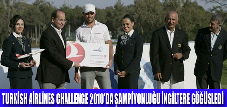 Büyük mücadeleye ev sahipliği yapan Turkish Airlines Challenge 2010 golf turnuvasının şampiyonu İngiliz Golfçü Charlie Ford oldu. İkinciliği İsviçreli Oscar Floran alırken, üçüncülük ödülünün sahibi İngiliz Stuart Davis oldu. Saha rekorunun kırıldığı şampiyonada, Türk oyunculardan Hamza Sayın ve Koray Varlı final müsabakasında yer alan golfçüler arasındaydı. Şampiyona sonunda dereceye giren golfçülerin ödülleri, Türkiye Golf Federasyonu Başkanı Ahmet Ağaoğlu, Türk Havayolları Genel Müdür Yardımcısı Kazım Çalışkan, Opet Yönetim Kurulu Başkanı ve Carya Golf Club Başkanı Fikret Öztürk tarafından verildi.