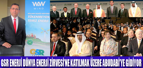 Türkiye Rüzgar Enerjisi Birliği(TÜREB) üyesi GSR Enerji, Birleşik Arap Emirlikleri başkenti Abu Dabi'de 17 -20 Ocak 2011 tarihleri arasında gerçekleştirilecek olan Dünya Enerji Zirvesi'ne(WFES) katılarak yenilenebilir enerji sektöründeki yerli üretimini dünyaya tanıtacak.