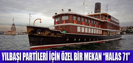 Tarihi gemide maksimum 120 kişilik organizasyonlar gerçekleşirken, tüm detaylar davet sahibiyle birlikte planlanıyor. Kendine has ikram tarzı ile sofistike davetlere sahne olan Halas 71, bu yılbaşında da sevdiklerine tarihi atmosferde şık bir davet vermek isteyenlerin vazgeçilmez adresi olacak.