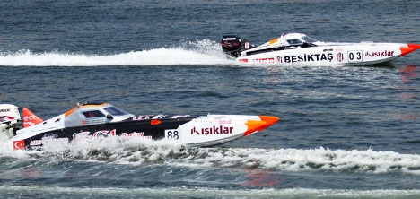Büyük yarışın startı saat 14.00'te verildi. Takımlar 2.5 millik parkurda toplu startın ardından rekabete başlarken, yarışın daha ilk turunda Hakan Vanlı- Süha Yenigül'den oluşan GHB Offshore Racing Team şanzıman arızasıyla yarışa hayli erken veda eden isimler oldular. Organizasyonun 9.turunda bu yıl şampiyonaya yeni dahil olan Efe Project-Mitsubishi Elektrik Racing Team (Nevzat Arman-Onur Özgül ), ECI takımı (Kerem Tuncer-Alpay Akdilek)) ile güzel bir çekişme yakalamışken 11.turda attıkları takla ile yarışa veda eden bir diğer takım oldu. Boğaç Hürzat-Mehmet Hantal'dan oluşan WD40 takımı ise 18 turda yaşadıkları hararet problemiyle yarışa veda ederken, yarışın yüzde70'lik kısmını tamamladıkları için puanlamaya dahil olarak Haliç'ten ayrıldılar. Yarışmada dereceye girenlere ödülleri; Fatih Belediye Başkan Yardımcısı Hasan Suver, UIM Komiseri Ahmed İbrahim Elbloushi, Gelişmekte Olan Spor Branşları Federasyonu Genel Sekreteri Songül Kara, İstanbul Offshore Kulübü Başkanı Uğur Işık, Petrotürk Yönetim Kurulu Başkanı Nafi Ağaoğlu ve Portaxe Yönetim Kurulu Başkanı Lütfü Sapmaz verdiler. Fatih Belediyesi ev sahipliğinde, Işıklar Holding-Architon ana sponsorluğunda düzenlenecek şampiyona bu yıl 8 şehir dolaşacak. Karbon Zero uygulaması ile çevreci yaklaşımını sürdüren organizasyon bu yıl aynı zamanda bir başka sivil toplum örgütü Lösev'i de destekliyor. Şampiyonanın İstanbul ile başlayan rotası Samsun, Elazığ-Tunceli, Van, Erdek ve Mersin ile devam edip Gaziantep'te noktalanacak. Yarışın İstanbul ayağının ikinci yarışı 6 Mayıs Pazar günü yine saat 14.00'te Haliç'te verilecek.