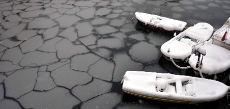 Çanakkale'nin Gelibolu ilçesi, Atatürk Meydanı'nda bulunan ve balıkçıların teknelerini bağladığı İç Liman bölgesinde soğuk hava nedeniyle denizin üzerinde buz parçaları oluştu