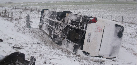 Zaman zaman vatandaşların otobüslerden inerek yürüdükleri, bazı vatandaşların da kayan araçlarını ittikleri gözlendi. Buzlu yolda kayan otobüs devrildi: 7 yaralı Ankara'nın Gölbaşı ilçesinde yolcu otobüsünün devrilmesi sonucu 7 kişi yaralandı. Alınan bilgiye göre, Ankara yönüne giden, sürücüsün ün kimliği öğrenilemeyen 34 YVY 47 plakalı yolcu otobüsü, Gölbaşı-Konya yolunda buzlanma nedeniyle refüje devrildi. Kazada biri ağır, 7 kişi yaralandı. Yaralılar, Gölbaşı Devlet Hastanesinde tedavi altına alındı.