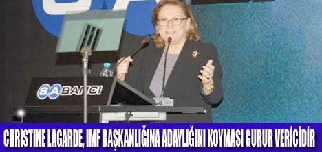 Sabancı Holding Yönetim Kurulu Başkanı Güler Sabancı Fransa Maliye Bakanı Christine Lagarde'ın IMF Başkanlığı'na aday olduğunu açıklamasını büyük bir memnuniyetle karşıladığını belirtti. Güler Sabancı konuya ilişkin şu açıklamayı yaptı: Bu süreçte tabii ki IMF üyesi ülkelerin hükümetlerinin tercihleri farklı olabilir. Ancak ben, son yıllarda bir çok kez çeşitli fırsatlarla biraraya geldiğim ve karşılıklı önemli paylaşımlarda bulunduğum, Fransa Maliye Bakanı Sayın Lagarde'ın IMF Başkanlığı için aday olmasının, tüm dünya için, dünya kadınları için bir fırsat olduğunu düşünüyorum.