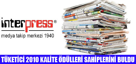 Tüketici 2010 Kalite Ödülleri' sahiplerini buldu. Interpress, geçen yıl olduğu gibi medya takip dalında yine ödüle layık görüldü.