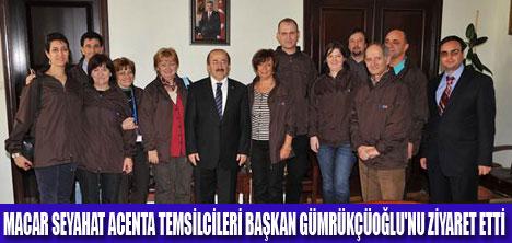 Trabzon'da iki gün kalacak 14 kişilik Macar seyahat acenteleri temsileri Trabzon Belediye Başkanı Dr. Orhan Fevzi Gümrükçüoğlu'nu ziyaret etti. Türk Hava Yolları Budapeşte Müdürü Levent Arısoy'un da katıldığı ziyarette konuşan Trabzon Belediye Başkanı Dr. Orhan Fevzi Gümrükçüoğlu Trabzon'u turizm yönünden daha da geliştirmek için gayret gösterdiklerini belirterek, "Bu tarihi şehirde Macar seyahat acenteleri temsilcilerini misafir etmekten son derece mutu olduk. Buradan güzel hatıralarla ayrılmaları bizleri son derece sevindirecektir.