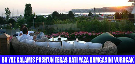 Kalamis koyunu ve marinadaki tekneleri etekleri altina alan goruntusu ile POSH'un teras kati size adeta bir tablonun icindeymissiniz gibi bir hava verecektir.