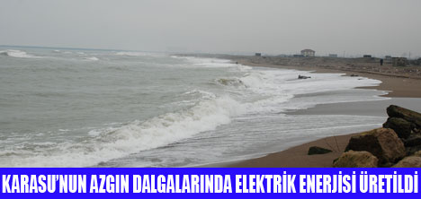 Deniz dalgalarından elektrik üretebilmek için 1,5 yıl önce Karasu'da başlatılan proje kapsamında ilk ampul yakıldı. Deniz dalgalarından elektrik üretebilmek için 1,5 yıl önce Karasu'da başlatılan proje kapsamında ilk ampul yakıldı. Kıyıya 100 metre mesafedeki santralin ürettiği elektrik enerjisi, iki evin günlük ihtiyacını karşılayabiliyor.