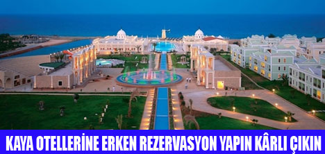 Türkiye'nin en büyük otel zinciri Kaya Hotels & Resorts, senenin tüm yorgunluğunu ve stresini atacağınız yaz tatili için Kaya Belek, Kaya Side ve Kaya Select Resort & Spa'da 6 Nisan'a kadar gerçekleştirilecek erken rezervasyonlarda % 30 indirim imkanı sunuyor. Ayrıca Kıbrıs'ın en gözde oteli Kaya Artemis Resort & Casino için gerçekleştirilen erken rezervasyonlarda % 25 indirim imkanı tatil severleri bekliyor.