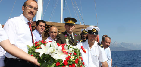 Şehit denizciler anısına denize çelenk bırakıldı..
