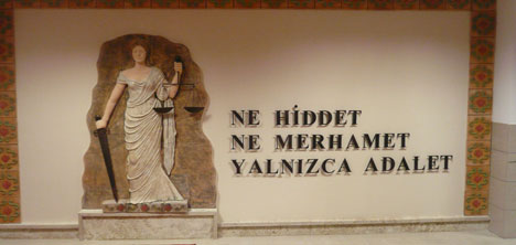 Bende bunu kabul ettim. Kemer'de bulunan atölyemizde yaklaşık 4 aylık bir çalışma sonrasında eser ortaya çıktı. Kendi tasarımım olan ve Adaletin simgesi olan Themis şu anda Adalet sarayında yerine aldı. Eserimizin yüksekliği 1.90 ve eni de 1.50 mt. dedi.