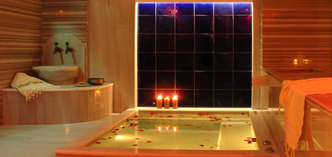 Hamamlı oda kadifeler, ipekler, mumlar, tütsülerle gizemli bir atmosfer sunuyor. Sürpriz tavan penceresinden, bahçeyi ve gökyüzünü seyredebileceğiniz bu özel suitin içerisinde büyük bir hamam bulunuyor. Marmara mermerinin ustaca uygulandığı çinileri yine sanatçı Meliha Coşkun'a ait.