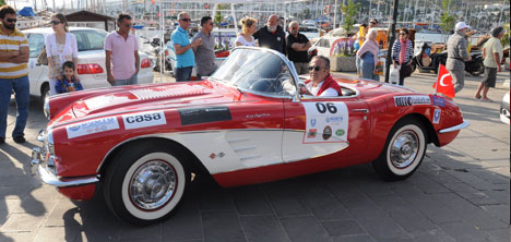 Klasik Otomobil Kulübü Başkanı Aydın Harezi önderliğinde Bodrum'a giriş yapan 1930- 1980 yılları arasında üretilen 38 klasik otomobil Bodrum Kalesi önündeki İskele Meydanı'na girdiler.