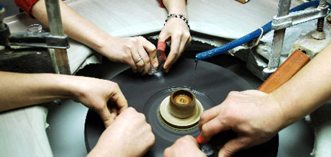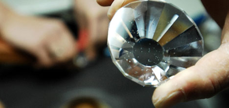 Atölyede çalışan genç kızlar ise zımpara taşı yardımıyla kristal camlara şekil veriyor. Her bir parçaya "biblo" adı veriliyor ve 1 biblonun şekillenmesi için ortalama 5 dakika emek harcanıyor. Atölyede çalışan gençler günde yaklaşık 150-200 parça bibloya şekil veriyor. Özel ışıkların altında çalışan genç kızlar, kristal cam parçalarını siparişlere göre şekillendiriyor.