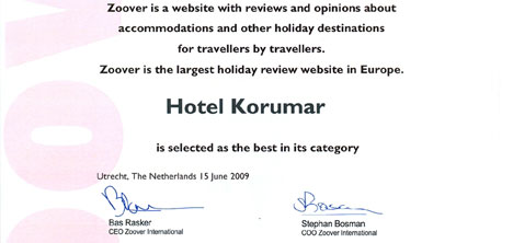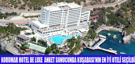 Dünyanın birçok tur operatörünün yer aldığı, tarafsız ve bağımsız bir web sitesi olan Hollanda kökenli Zoover Holiday Reviews (www.zoover.nl ) tarafından, Korumar Hotel De Luxe'de konaklayan 883 misafirin tatil dönüşlerinde doldurdukları anketler sonucunda, 10.0 puan üzerinden 9.0 puan ile Kuşadası'nın en iyi oteli ödülünü aldı.