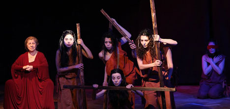 J. Paul Sartre'in çalışması, Güzin Dino tarafından Türkçe'ye çevrildi. Oyunun uyarlamasını, yönetmenliğini üstlenen Ayla Algan, sahnedeki yerini de aldı. Algan'a Özgül Sağdıç, Damla Ekin Tokel, Elif Yıldız, Özge Korkmaz, A. Esra Salebçi, Tuba Akten, Perihan Kurtoğlu, Sevi Algan, Erol Babaoğlu, Kadir Kandemir, Boglarka Csösz eşlik etti. Troyalı kadınların savaş sonrasında düştüğü çaresizliği anlatan tek perdelik oyun, izleyicileri tarafından büyük alkış aldı.