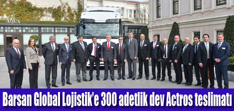 Uluslararası nakliye, gümrük müşavirliği, depo ve stok yönetimi hizmetleri sunan Barsan Global Lojistik 2012 yılında da filosunu 100 adet Actros 1841 LSNRL “lowliner” olarak tanımlanan düşük pleyt yüksekliğine sahip çekiciler ile genişletmişti. Four Seasons Hotel Bosphorus’ta düzenlenen teslimat törenine Barsan Global Lojistik A.Ş. adına Yö-netim Kurulu Başkanı A. Cengiz Çaptuğ, Yönetim Kurulu Üyesi ve TIR İşletme Direktörü Sedat Ge-yik, Yönetim Kurulu Üyesi Denetleme ve İK Direktörü Hakan Kölemenoğlu, Mercedes-Benz Türk A.Ş.’den Pazarlama ve Satış Direktörü Süer Sülün, Kamyon Pazarlama ve Satış Müdürü Bahadır Özbayır, Kamyon Filo Satış Müdürü Alper Kurt, Mercedes-Benz Türk 2.EL Faaliyetleri Genel Müdürü Osman Nuri Aksoy, Mercedes-Benz Türk Truckstore Kamyon Satış Müdürü Tolga Bilgisu ve Mercedes-Benz Türk Satış Sonrası Hizmetleri Kamyon Kısım Müdürü Mehmet Doğan katıldılar. Mercedes-Benz Bayii Mengerler Ticaret Türk A.Ş. Yönetim Kurulu Başkanı Ergin İmre, Mengerler Ticaret Türk A.Ş. Genel Müdürü Hayrettin Karaboğa, Mengerler Ticaret Türk A.Ş. İstanbul Şubesi Genel Müdürü Nusret Güldalı ve Mengerler İstanbul Şubesi Satış Müdürü Cihan Ekinci törende yer aldılar.